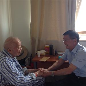 8月25--26日两天,老干部办公室的两位同志在院党委书记吴爱中、副书记、纪委书记杨春华的带领下看望慰问了我院6位抗战时期的离休老干部。吴书记亲自看望了我院抗战时期参加革命的原副院长宋祥序(享副部级医疗待遇)、原组织处处长徐敬(享局级);杨副书记看望了我院抗战时期参加革命的享局级干部吴清云、享局级干部顾金德、参局级干部魏殿山;老干部处处长看望慰问了抗战时期参加革命的局级干部方明的家属。
