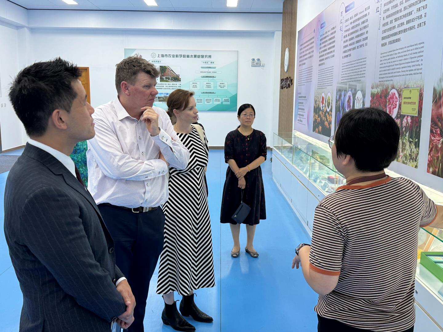 座谈会前,农业贸易特使一行参观了奉浦院区食用菌所中试菇房和花卉种源创新中心,相关负责人参与接待并展示了各领域的科研成果及应用场景。