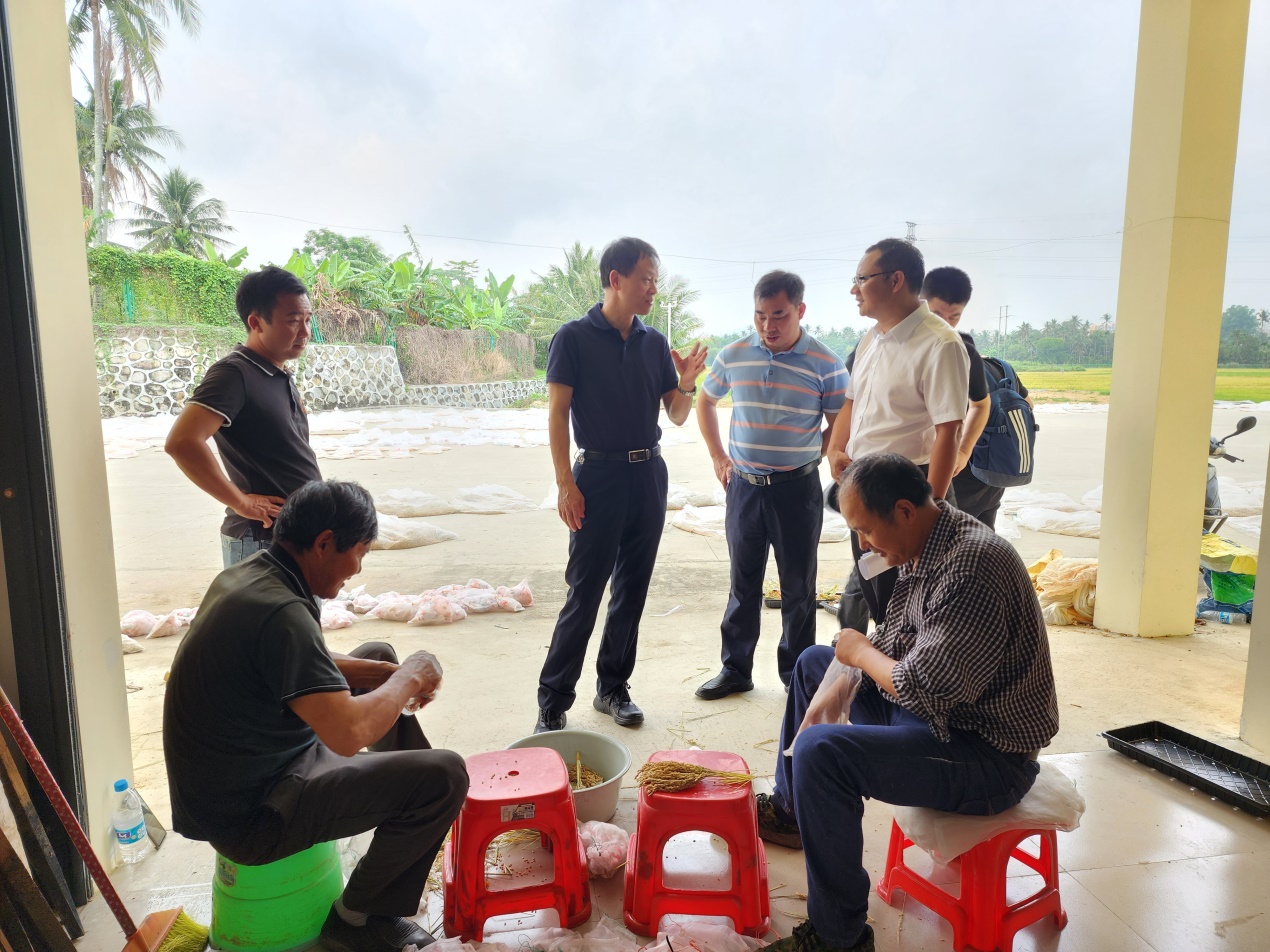 4月18日上午,十三届全国政协委员、福建省政府参事、省粮食和物资储备局原局长赖应辉一行5人到我院南繁基地调研。