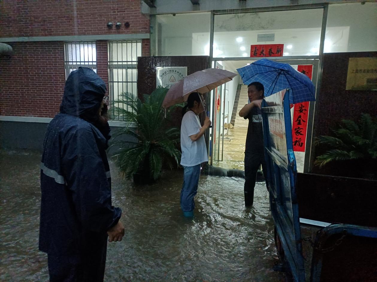 由于华漕院区和家属区处于地势低洼地段,每每汛期来临,积水受灾严重。当天雨势过猛,导致市政排水系统超负荷运载,降水来不及排出,高架路面和周边地区雨水全部往院区倒灌,十分钟之内华漕院区积水已达50-60公分,实验室、食堂、办公楼……都已不同程度进水。正值下班时间,暴雨来得迅疾、猛烈,让人猝不及防、应接不暇。服务中心应急工作小组训练有素,立即启动救灾应急预案,各部门工作人员立即到位,主动开展抢险救灾工作。