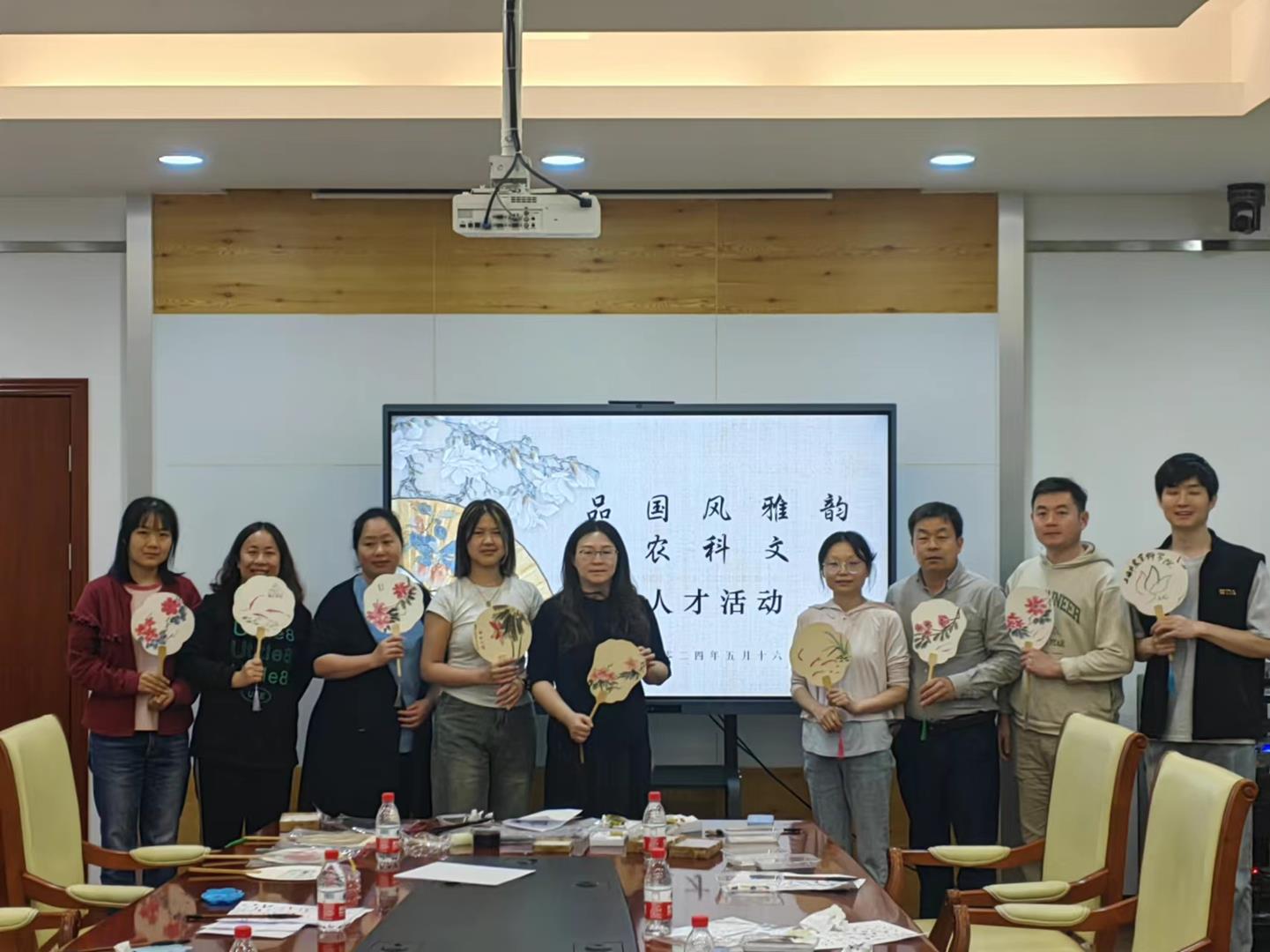 5月16日下午,我院联合闵行区春申金字塔人才学院新虹分院在华漕院区共同举办了一次以“品国风雅韵,展农科文化”为主题的人才沙龙活动,体验扇面绘画,感受中华传统文化魅力。各研究所12位人才参加了活动。