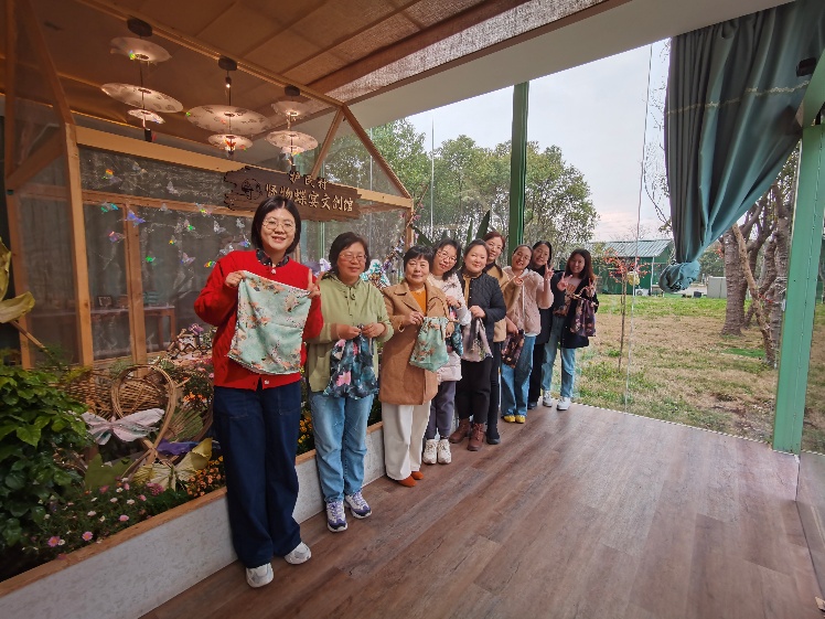 在蝴蝶庄园核心展区,园区技术专家为盟员们详细讲解了蝴蝶孵育温室与生态再建系统,在“蝴蝶文创馆”内,盟员们近距离鉴赏了百余种珍稀蝴蝶标本,深刻感受到“自然科技化、科技艺术化”的跨界融合的魅力。在活动实践环节,盟员们在古韵悠扬的手作工坊内,参与完成了国风手袋DIY创作。