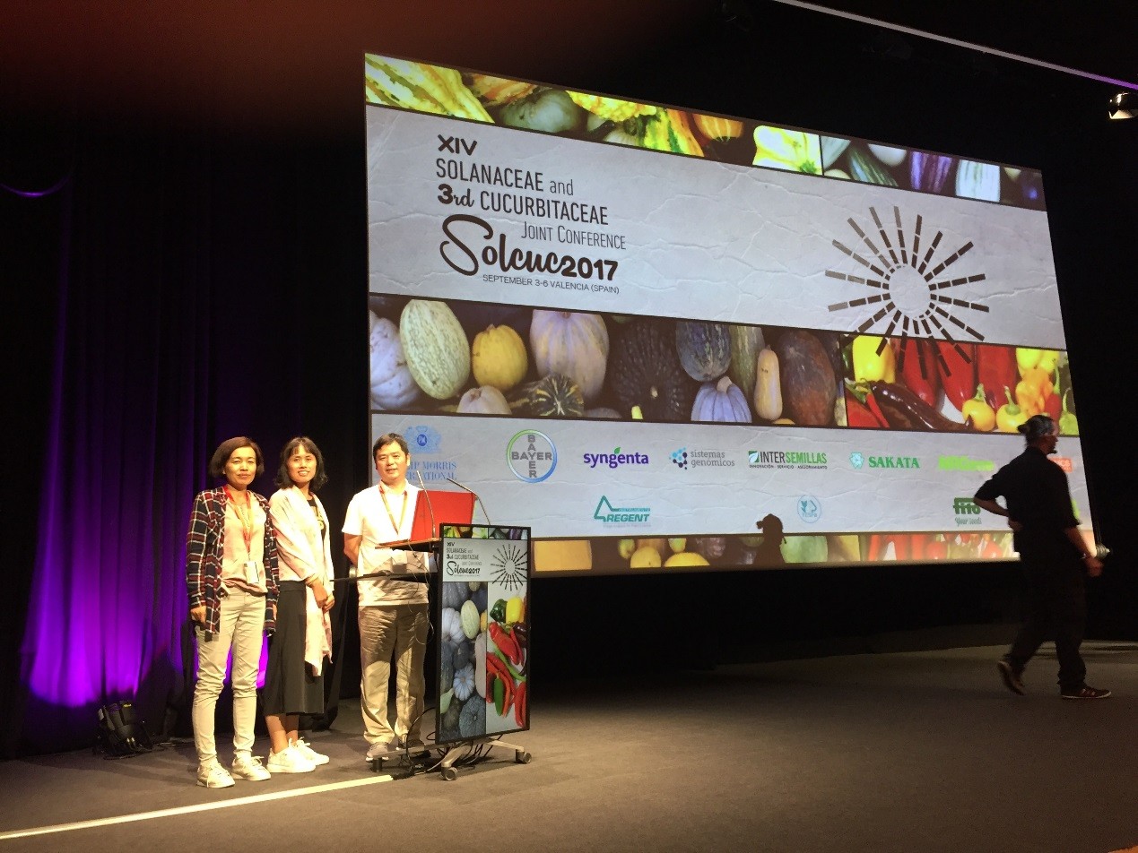 9月3-8日,第14届国际茄科暨第3届国际葫芦科国际学术研讨会(The XIV Solanaceae and III Cucurbitaceae Genomics Joint Conference)在西班牙瓦伦西亚顺利召开。来自中国、法国、英国、意大利、德国、韩国和日本等数十个国家的500余名科技工作者参加了此次国际学术会议,各国研究人员围绕茄科蔬菜(蕃茄、茄子和辣椒)、葫芦科蔬菜(西瓜、甜瓜)的基因组学、品质发育及抗病性等主题展开了学术交流和讨论。我院园艺所吴雪霞研究员、张永平副研究员参会并针对外源激素对逆境胁迫下茄子和甜瓜的缓解作用提交了摘要(Modulation of zinc-induced oxidative damage in Solanum melongena by 6-benzylaminopurine involves ascorbate–glutathione cycle metabolism,Effects of melatonin on photosynthetic performance and antioxidants in melon during cold and recovery),认真听取各国科学家的最新的番茄、辣椒、茄子和甜瓜研究进展大会报告,在功能基因克隆和功能分析以及基因编辑等领域获得了很多收益。