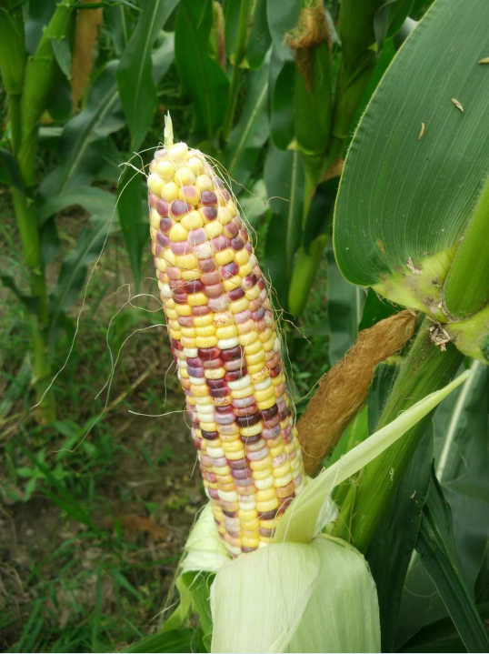 鲜食糯玉米新品种“沪五彩花糯1号”是我院作物所玉米中心选育的特色优质糯玉米品种,2014年通过上海市农作物品种审定。该品种株高210厘米,穗位高70厘米,生育期春播出苗至采收83天左右;籽粒紫白黑红黄色,排列整齐,鲜食品尝皮薄,糯性好,单穗重250-280克。