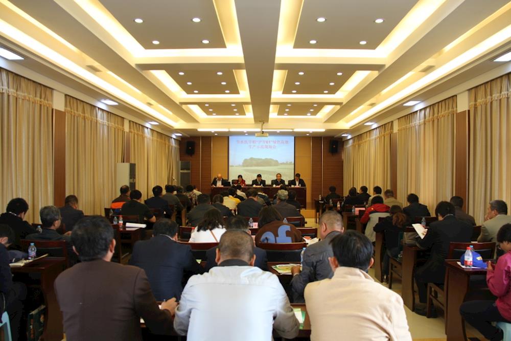 会上齐茂粮食合作社负责人宋永久介绍了“沪旱61”的品种种植情况,上海市农技推广中心粮油科顾玉龙科长介绍了“沪旱61”品种特征特性和市郊的示范情况,崇明种子公司顾永平总经理介绍了近两年“沪旱61”在崇明的示范推广情况,上海天谷生物科技股份有限公司作为主营节水抗旱稻品种的种业企业介绍了“沪旱61”的育繁种情况,交流会后,举办了专家学术报告。上海市农业生物基因中心首席科学家罗利军研究员做了“节水抗旱稻研究和推广”的学术报告,上海市农业科学院生态所周胜研究员做了“节水抗旱稻生态环境效益研究与展望”的学术报告,使与会者对种植节水抗旱稻的生态环境效益有了更深的认识。种子企业代表上海金门种子有限公司、种植大户代表上海齐茂粮食专业合作社分别与上海天谷生物科技股份有限公司签订“沪旱61”种子代理购销协议。