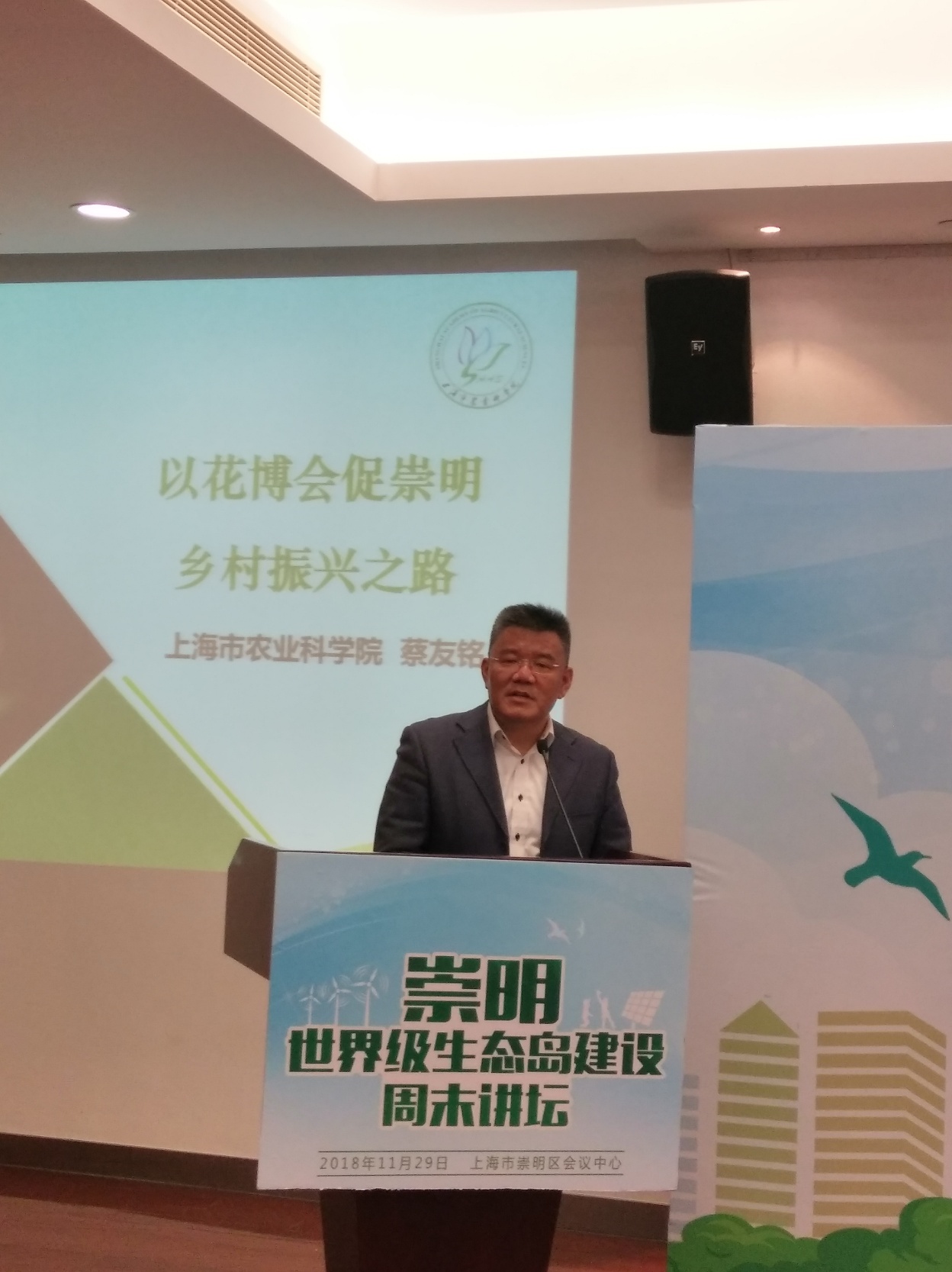 11月29日,由崇明区发展改革委、区农委联合主办,上海崇明生态发展研究院承办的2018年第十一期“崇明世界级生态岛周末论坛”活动在崇明区会议中心举办。市、区相关部门,以及国内外生态建设和乡村振兴领域的权威专家、企业代表、相关高校等近150人参加。我院党委书记、院长蔡友铭出席作了“以花博会之机促崇明乡村振兴之路”的主题演讲。院党政办副主任易建平,院成果转化处副处长、科技兴农办主任谢祝捷,院信息所党总支副书记曹红亮以及信息所农业经济研究室主任马佳研究员、副研究员刘增金、周洲博士、王丽媛等科技人员应邀参加。