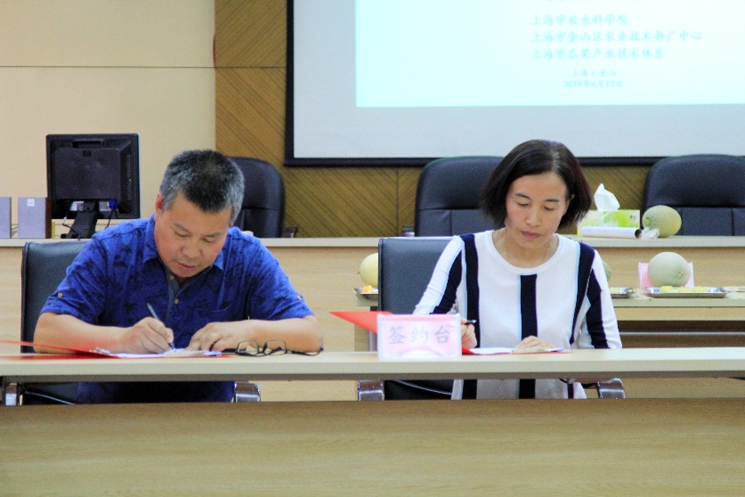 金蜜一号的育种负责人张永平副研究员介绍了“金蜜一号”甜瓜新品种品种选育过程、品种特性以及亮点工作,并代表我院与上海秀水种子公司签订了成果转化协议,转化金额为120万元。