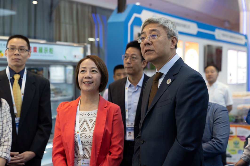 我院生态所水环境治理团队携《富营养化湖泊湖滨缓冲带重建与水体生态修复》项目参展。9月5日上午,国家和各省市领导人巡馆期间,在上海市科委副主任傅国庆和上海科技交流中心主任王震陪同下,上海市委副书记尹弘来到了我院展区,邹国燕研究员就我院在水环境治理领域的技术研究与推广示范成果进行了详细的介绍,并演示了宁夏星海湖国家湿地公园项目基地的影像资料。尹弘副书记表示了极大的兴趣,就水质改善和水体生态修复的方法和机理与邹国燕研究员进行了深入地交流,并鼓励上海市农业科学院根据西部地区及阿拉伯国家重点发展领域,将先进的技术和理念传递给西部地区和一带一路沿线国家,提供有针对性的技术成果,拓展上海在一带一路国家战略规划中的辐射带动作用。