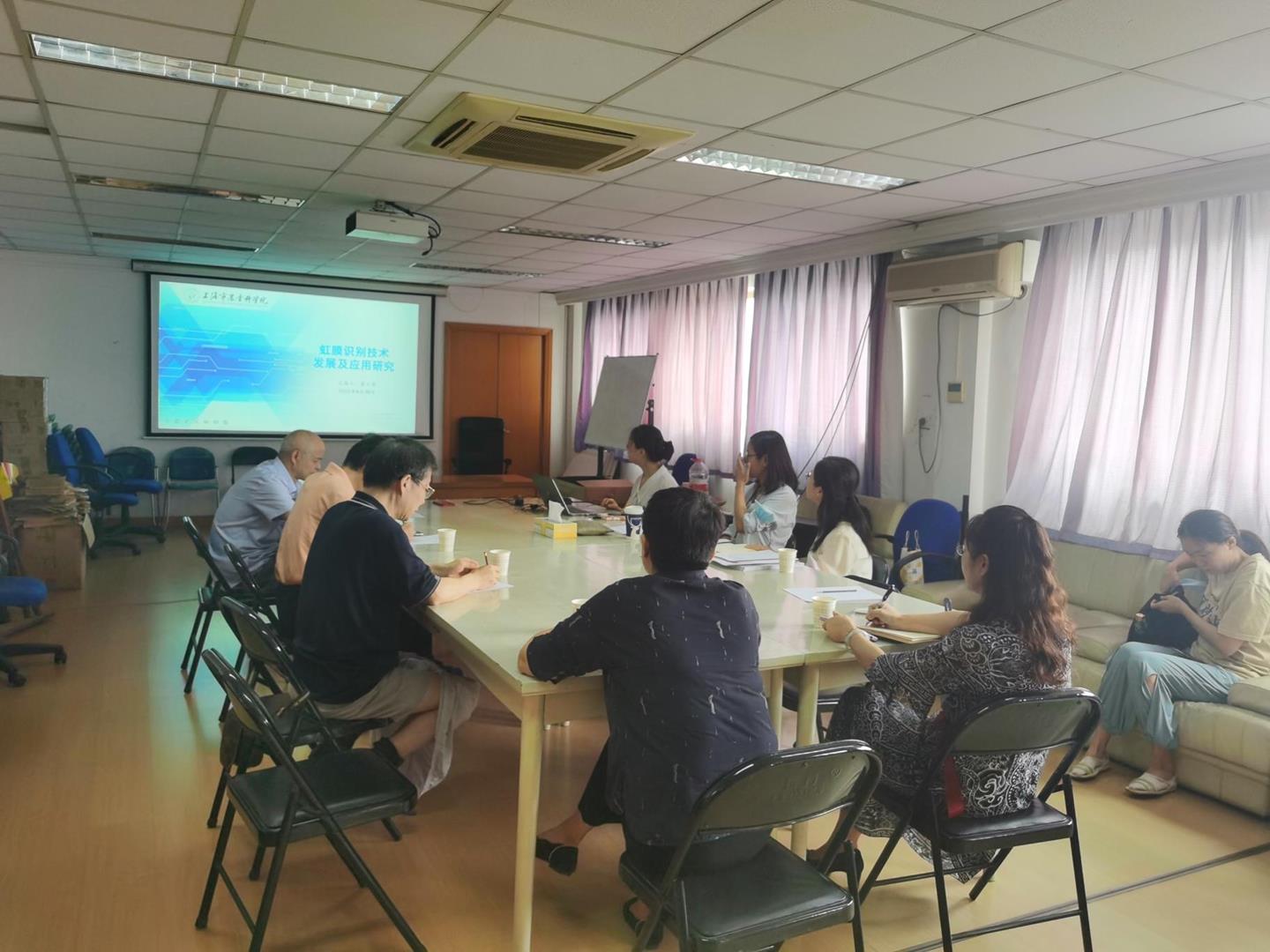 各单位参与评审的课题,涉及各种生物识别技术的发展形成历史,以及在通讯、农业、医学、工业、金融业、交通等领域的应用现状及发展前景。我院科技人员蔡小昂围绕“虹膜识别的技术发展及应用研究”一题展开了报告。报告内容聚焦国内外发文和专利分析、虹膜识别技术发展概述、情报周展品等多个要点,并结合丰富的具体实例进行详细说明。评审委员们肯定了课题前期的研究成果,并针对报告中出现的问题提出了修改的建议。