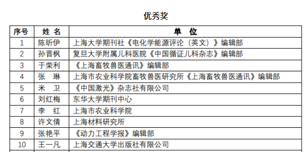 为全面贯彻落实党的二十大、二十届一中全会精神,进一步贯彻落实习近平总书记关于“建设世界一流科技期刊”相关讲话精神,切实提升上海市科技期刊编校质量,培养和发现一流编辑人才,在上海市新闻出版局指导和支持下,由上海市科技期刊学会主办的“第五届上海市科技期刊编辑技能大赛”于2022年12月8日在线上顺利举行。《上海畜牧兽医通讯》编辑部在比赛中分别荣获团队和个人优秀奖。