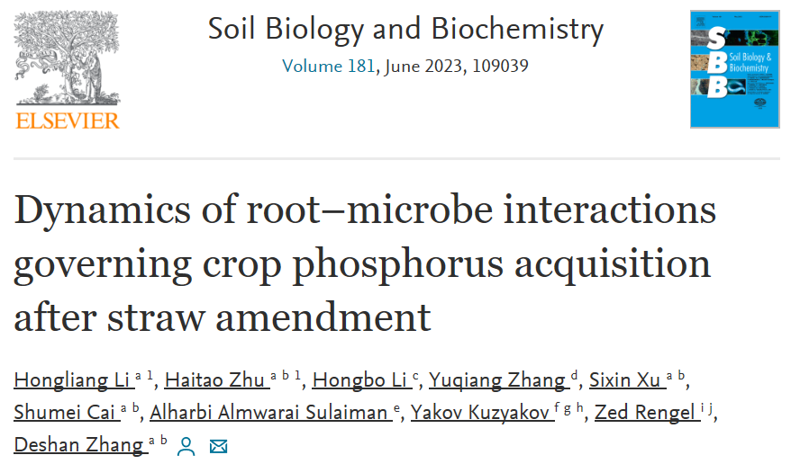 上海市农业科学院生态环境保护研究所施肥技术组副研究员张德闪、诸海焘、蔡树美、徐四新以及学生李洪亮、澳大利亚西澳大学Zed Rengel教授、德国哥廷根大学Yakov Kuzyakov教授、美国杜克大学张玉强博士、沙特阿拉伯国王大学Alharbi Almwarai Sulaiman博士共同参与了此项研究。该研究得到了国家自然科学基金青年基金(31801946)、国家重点研发计划(2017YFD0200200)等项目的资助。
