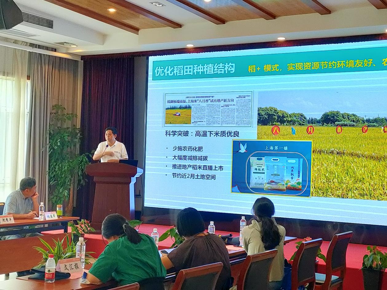 罗利军作题为“都市水稻生产提质增效研究”的报告。罗利军指出,当前上海农业生产模式面临着水稻生育期长、成本高、产值低、环境污染严重、农田利用率低等问题,都市现代农业提质增效这一难题亟待解决。罗利军以节水抗旱稻“八月香”为抓手,探讨都市农业的发展新方案。基于节水抗旱稻节水抗旱、高产优质的特性,配套旱直播旱管的栽培方式,在金山廊下的万亩粮田里,“八月香”雪花粳成功降低了田坎系数,减少了排水沟建设面积,每百亩可节约土地面积4亩左右,极大地提高了土地的利用率。同时,基于“八月香”的“稻+”模式,有效提高了土地全年的利用效率,优化了稻田种植结构,提高了农户的经济效益。罗利军介绍,“八月香”雪花粳具有极高的生态价值,在减少碳排放、减少氮肥使用量方面优势显著。会上,罗利军以“八月香”为案例,与参会人员分享在都市农业发展理念、农田规建、学科集成与支持方面的思考和建议。