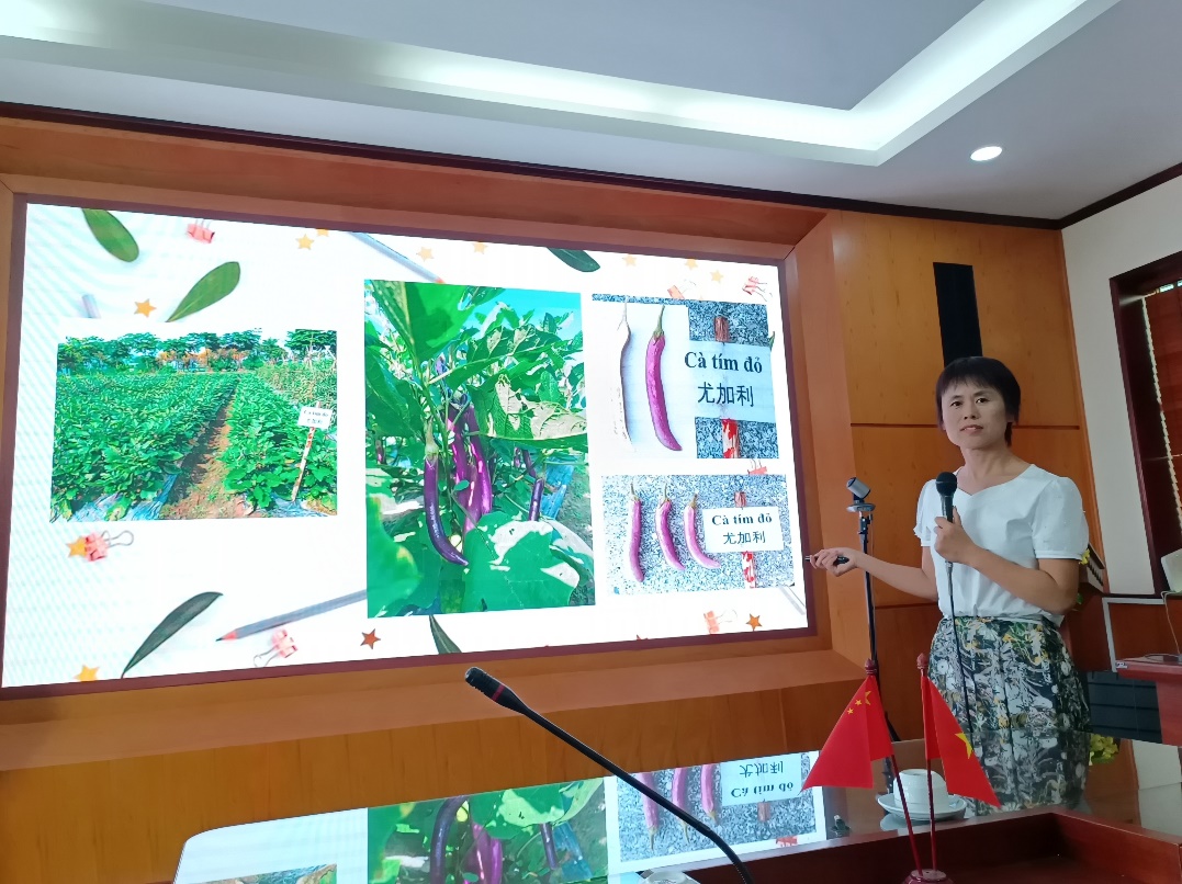 此前,双方已有一定的合作基础,2022年12月,通过“一带一路”中越农业科学国际联合实验室建设,越南北江农林大学从我院园艺所引进茄子品种5个,番茄品种4个。根据越南农业部对茄果类品种认定要求,越南北江农林大学详细记录了9个品种的特性:播种日期(2023. 1)、定植日期(2023.3)、开花时间、产量、抗病性,从适应性、产量、抗病性和当地消费习惯,并初步筛选出2个茄子品种,2个番茄品种。