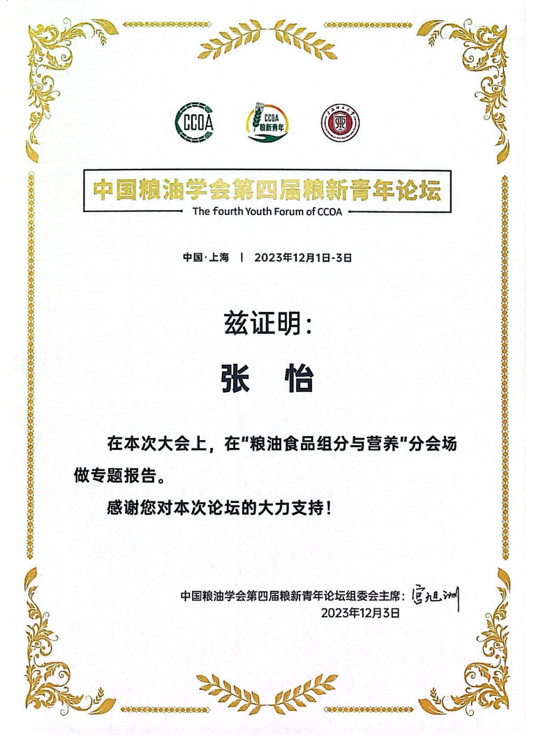 2023年12月1-3日,由中国粮油学会主办,中国粮油学会青年工作委员会、上海理工大学和国家粮食产业技术创新中心承办的中国粮油学会第四届粮新青年论坛在松江区上海富悦大酒店举行,本次会议是我国粮油界的一次盛会,会议围绕“牢固树立大食物观,科技助力粮食安全”主题,对“粮油食品加工与制造”、“粮油食品贮藏与信息化”、“大食物观与粮食安全”、“粮油食品组分与营养”以及“粮油食品质量与品控”等五个方向进行80多位学术报告。