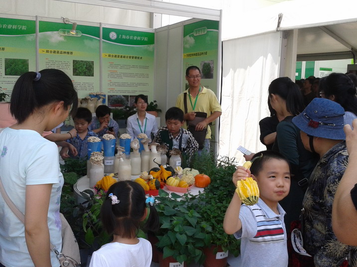 我院积极参与“绿色生活”展区中阳台蔬菜展项的前期布展、策划设计工作,在一周展期中,科普专家和工作人员均以饱满的热情,耐心解答游客提问,宣传现代农业科普知识。除了重点推荐介绍适合家庭阳台栽培的观果类、辛香类、彩色蔬菜、绿叶保健蔬菜等特色植物品种与相关日常种植基础管理技术之外,还辅以各种现场互动活动,包括绿色健康食用菇类和各种形态观赏南瓜、迷你桔瓜等的展示,芳香植物嫩叶的冲泡与品尝,近千盆芳香植物小盆栽和800余本有关庭院种植的科普书籍的分发等,引起了大家对科普浓厚的兴趣,掀起一次次人潮涌入的高峰,得到活动主办方组委会和广大市民的一致认可和好评。