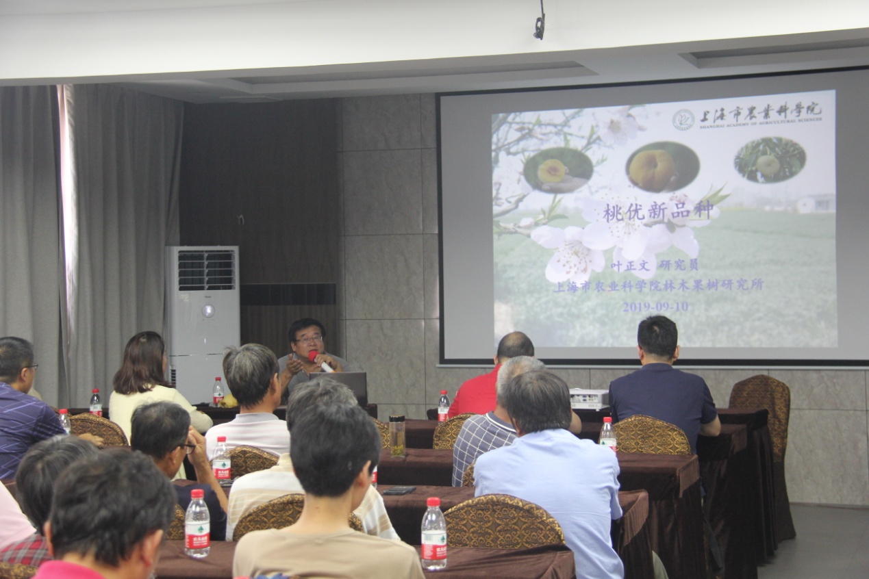 应上海市林业总站邀请,9月10日下午,我院林果研究所所长叶正文研究员、周慧娟副研究员专程赴金山区上海枫锦果蔬种植专业合作社作了题为上海市林果乡土专家田间课堂的专题讲座,上海市林业总站杨储丰站长、枫泾镇新义村党总支书记尤利明、50余名区镇技术骨干和专业桃农代表参加了此次培训,会议由上海市林业总站果树管理科科长(金山区枫泾镇新义村驻村指导员)朱彬彬主持。