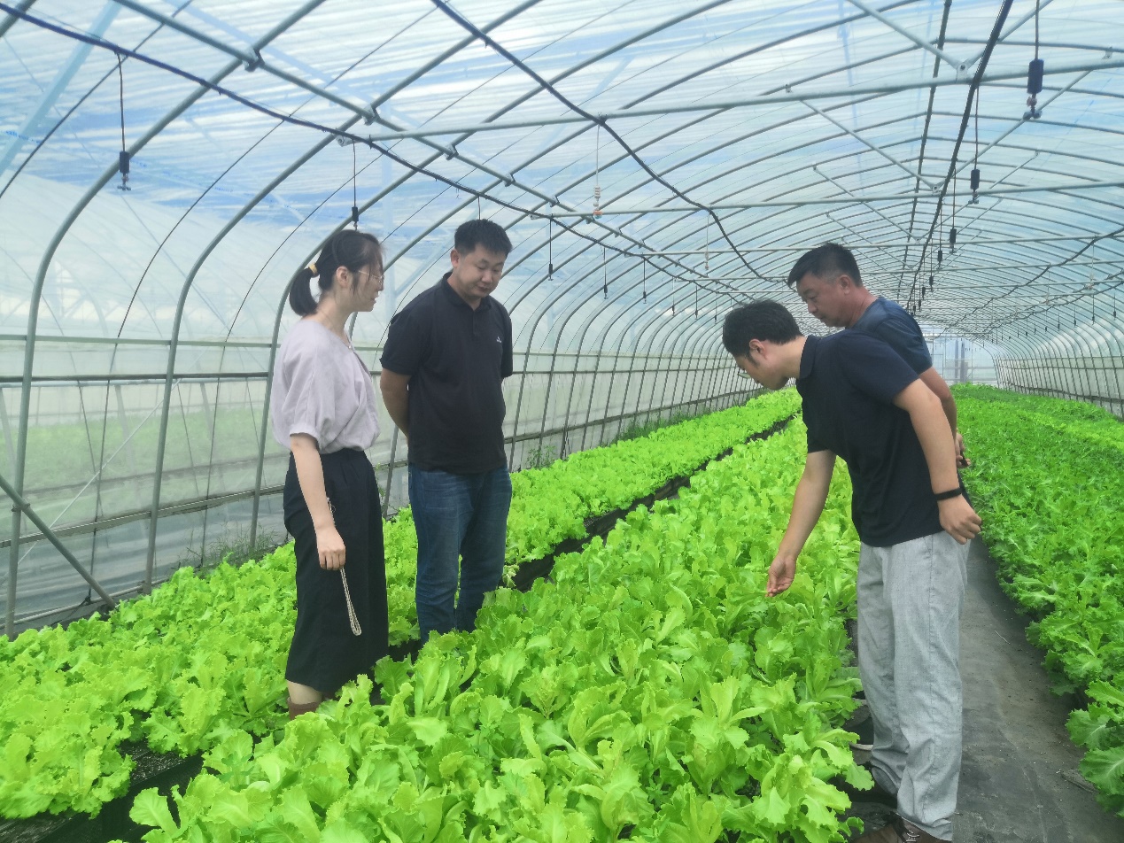 专家一行先后到奉贤区绿煜蔬菜合作社、星辉蔬菜集团调研,了解并实地查看了两家蔬菜生产单位“夏淡”季蔬菜种植情况。为推进上海市科技兴农技术创新项目《上海地区“双淡”保供蔬菜新优品种选育与示范推广》有序开展,前期绿叶菜团队骨干宋云鹏将筛选出的较抗热耐抽薹的生菜品种在两个基地示范种植,绿煜合作社以基质栽培为主,星辉蔬菜集团以水培为主,两家单位均是在7月下旬播种,8月中旬定植,经过高温季节种植及持续观察,前期筛选出的绿色散叶生菜“L18-2”、意大利生菜类型“L18-16”及奶油生菜“申选4号”表现良好,均较绿色散叶生菜品种“绿波”耐抽薹,有一定推广潜力。