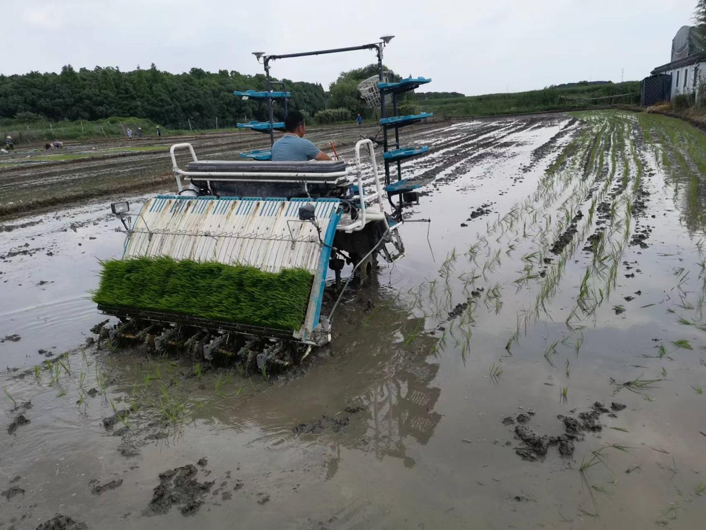 2022年6月20日,生态所宋科副研究员赴青浦区金泽镇金粹专业农业合作社和蔡伯伯生态农庄指导水稻插秧和侧深施肥工作。