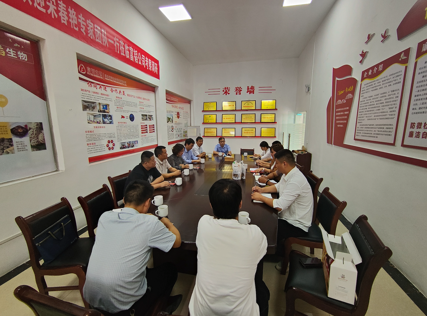 在竹山县湖北富韬生物科技有限公司,宋春艳一行考察了香菇产品包装和销售情况,与公司董事长王珍珠在耐高温新品种引进、香菇保鲜技术、香菇科普宣传、技术合作等方面进行深入交流。宋春艳表示,目前食用菌产业主要集中在第一产业,富韬公司充分发挥了自身优势将香菇产品远销东南亚,很大程度上解决了本地香菇的销售问题。在诚友(郧西)智慧农业科技有限公司总部,宋春艳一行考察了公司的香菇酱、香菇脆片、鲜香菇下饭菜等即食食品的加工销售工作,对多个口味的鲜香菇下饭菜进行品鉴,对新产品的开发升级提出了想法及建议。