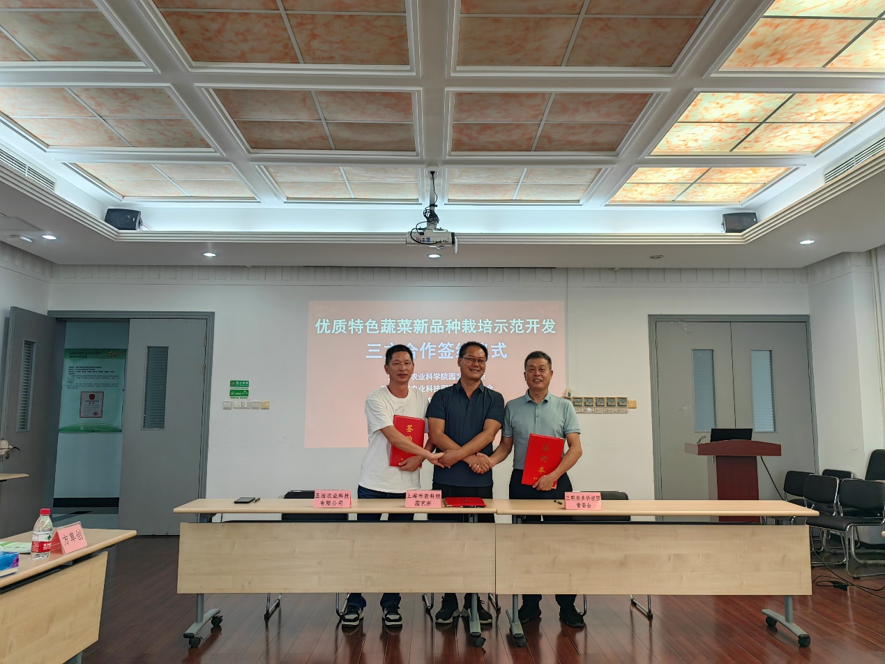 2023年8月17-18日,三明国家农业科技园区管委会、福建三明市沙县农业农村局及辖区农业企业一行到访我院园艺所,就优质特色蔬菜新品种栽培示范开发达成合作协议。