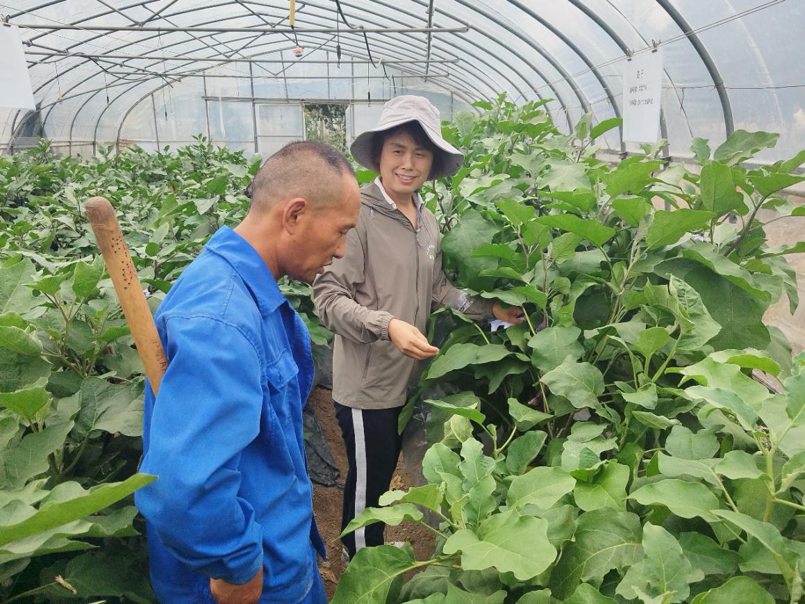 随后,吴雪霞针对基地高温条件下茄子生长出现的一系列问题,建议基地工作人员要根据茄子生长情况做到适时采收、及时打老叶,改善不同株、行间的通风透气性,保证茄子的正常生长。