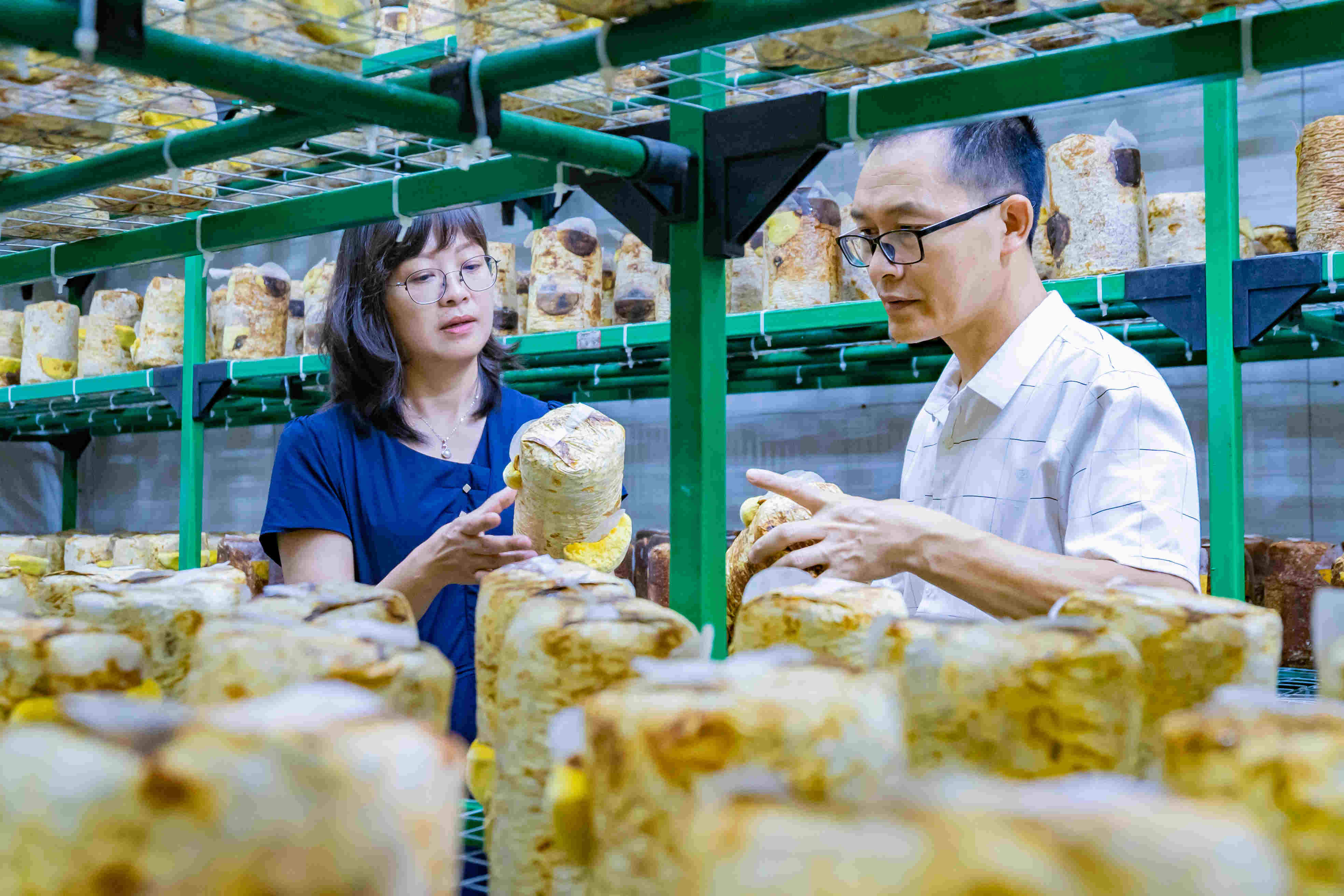 “桑黄菌包在培养和出菇期间的温度、光线、通风调控等对桑黄子实体的生长质量十分重要,菌包通过标准化培养,形成生理成熟的菌包才能形成良好的子实体,保障高产优质。”桑黄项目组专家李正鹏介绍,设施栽培能够将这些指标控制在一个相对平衡且稳定的状态,但若要大面积推广,如何在大棚中稳定出菇是下一步需要探索的关键技术,“桑黄的生长周期90天,是其他菌菇的近三倍,需要探索适宜当地气候的生产标准,并做好产前培训。”目前,森源公司的大棚生产基地正处在试验阶段,专家们正在通过反复试验比对,探寻最优方案。