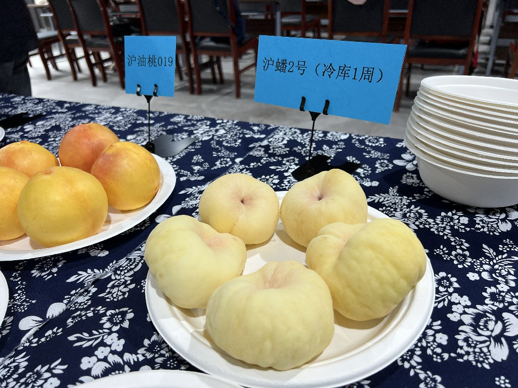 而在黄桃区域,“锦冠”品种圆整的外观、细腻香甜的口感受到现场专家的一致赞赏。“‘锦冠’是我们去年通过审定的新品种,上市期在7月20日左右,填补了这个时段市场没有优质黄桃的空缺,现在正是品尝的最佳时期。”国家桃产业技术体系岗位科学家、上海市农科院林果所桃团队负责人叶正文研究员介绍,单一品种桃的上市期一般在10—15天,团队近年来已选育9个成熟期不同的“锦”系列优质黄桃品种,上市期可覆盖6月上旬至9月中旬,延长黄桃销售期,进一步提高果农收入,为沪郊黄桃产业的蓬勃发展助力。
