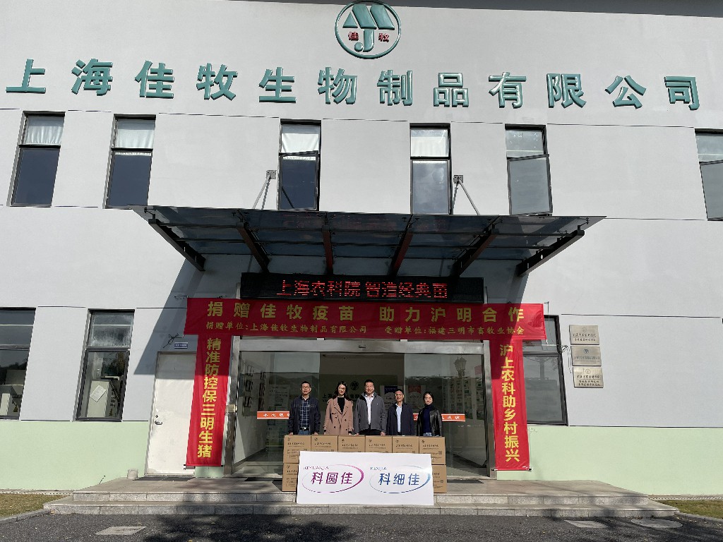 为了进一步深化“沪明”两地合作交流,增进“沪明”情深,发扬革命老区精神,展示推广农科院科研成果,服务三明生猪产业,11月24日,上海佳牧生物制品有限公司(以下简称“佳牧生物”)向三明市捐赠科圆佳1000瓶、科细佳5000瓶,预计可为3万头生猪提供防疫,并于当天下午运往当地。