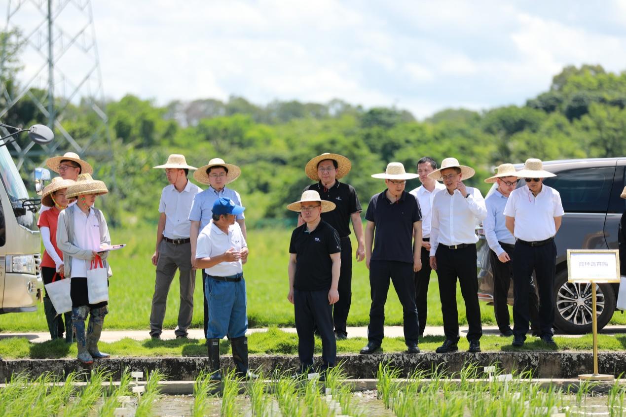 会前,陈宇剑一行考察了南繁基地田间布局,实地查看了科研育种材料,并慰问南繁一线科研人员。南繁科研人员余新桥研究员汇报了节水抗旱稻种资资源创新与利用情况,展示了当前田间种植的8000多份科研材料、品种集成展示示范区等。