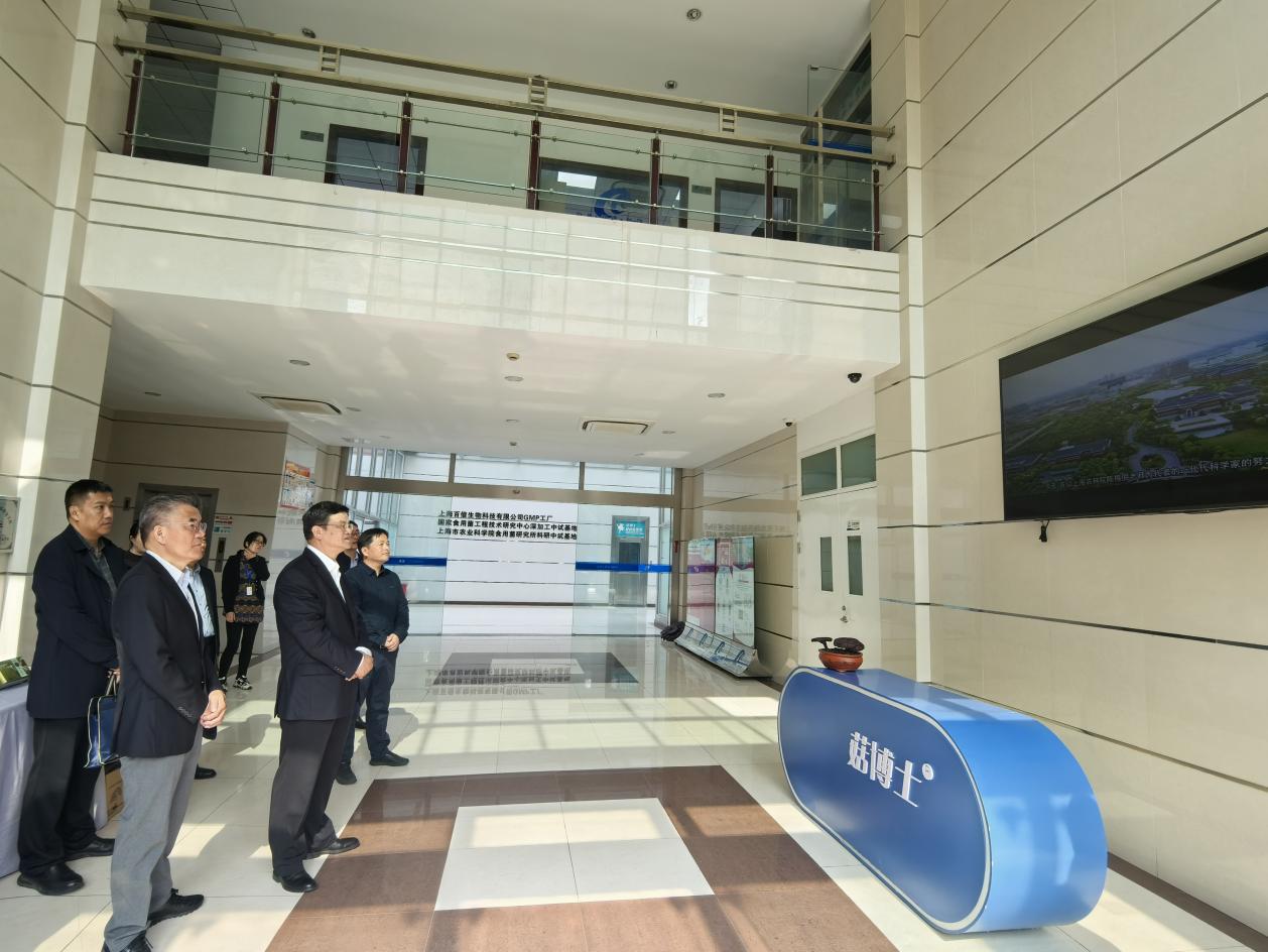 罗成虎一行实地参观了花卉种源创新中心、国家食用菌工程技术研究中心、上海百信生物科技有限公司。