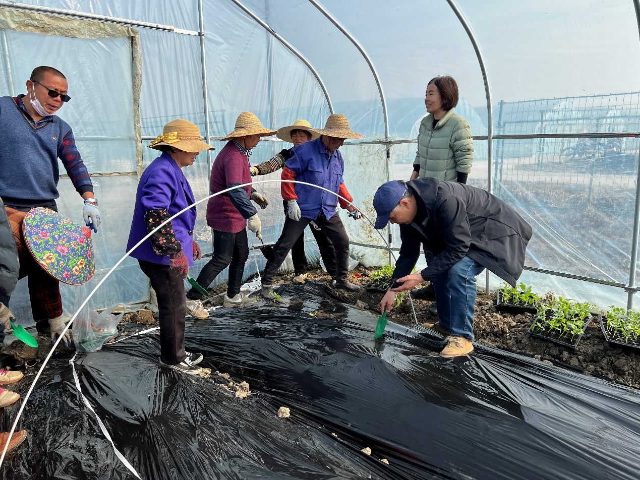 沈海斌一行来到秀水种子公司指导“金蜜一号”甜瓜种植,专家针对定植过程中种植密度、水肥管理、保温技术等进行了实地指导。在对接会上,双方就金山区西甜瓜产业发展面临的问题展开了深入的交流与讨论,确立了将来的科技合作意向。根据“全国农业科技现代化先行区工作实施方案(2021-2025年)”中西甜瓜产业发展要求,明确了2022年对接的8个示范基地,分析了金山区西甜瓜产业在种源、育苗、生产、销售环节中存在的问题,希望今后能以项目合作的形式进一步加强双方的交流,共同破解西甜瓜产业发展的技术难题。