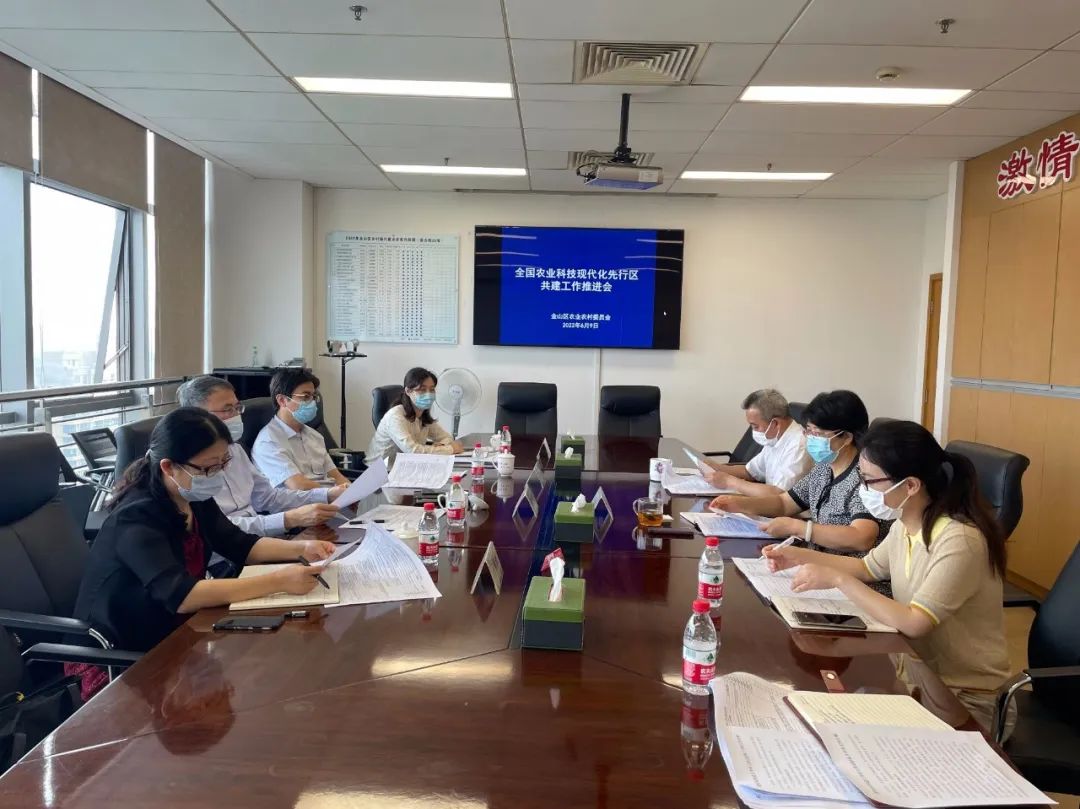 为加快因疫情封控管理影响的计划进度,有效推进金山区全国农业科技现代化先行区共建工作,6月9日,我院与金山区共同举办先行区共建工作推进会。院党委委员、副院长赵志辉,金山区农业农村委主任叶文娣出席会议,院科研管理处、区农业农村委分管领导等参加会议。