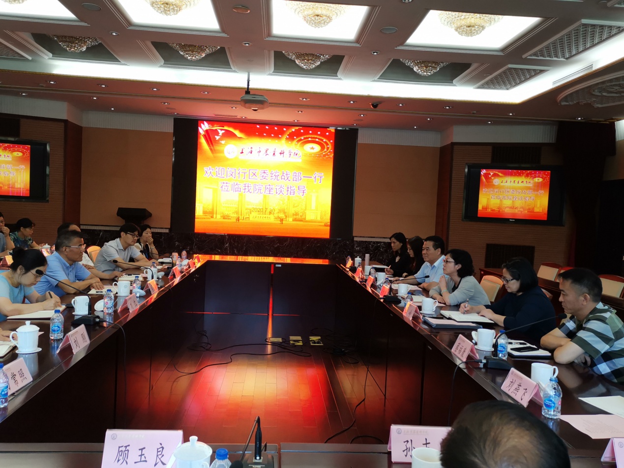 7月30日上午,闵行区委常委、统战部部长李红珍一行来我院座谈,院党委书记、院长蔡友铭接待来宾,院党委副书记徐伟林,院党委委员、组织人事处处长刘红陪同交流。