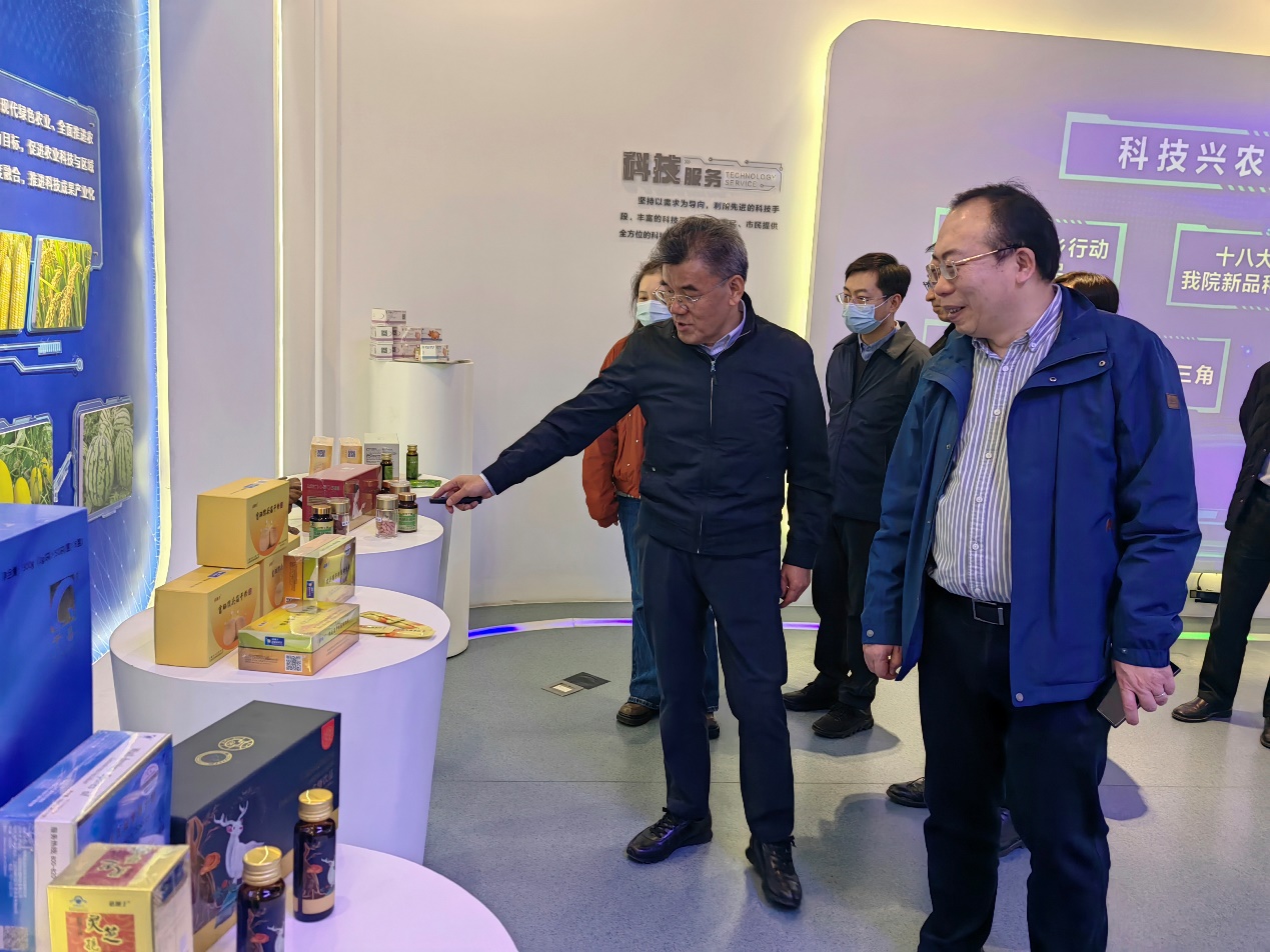 蔡友铭对调研组到我院调研表示感谢。他指出,近年来我院以服务农业高质量发展,服务市民高品质生活为目标,围绕“顶天、立地、树人”——即孵化原创性科研成果、推进成果转化为实际应用、培养优秀的科研队伍三个方面开展了卓有成效的工作。一是加强种源创新,打造创新策源新高地。始终坚持藏粮于地、藏粮于技,发挥比较优势,努力攀登科技高峰,很多成果与技术在行业领域具有先进性。二是强化科技成果转移转化与推广应用,支撑乡村产业振兴。把推进乡村全面振兴作为农业科技的行动目标,科技人员、科技成果、科技资源下沉重心,把振兴区域经济、村镇特色产业作为主战场,提供一揽子综合解决方案,助力打造新产业新业态新模式。三是坚定不移加强党的建设,为打造国内一流、有鲜明特色的现代农业科学院提供坚强保证。深入学习贯彻习近平新时代中国特色社会主义思想,坚持支部建在科技创新团队上,持续深化全面从严治党。提到对于科技产业干部人才培养的建议,蔡友铭表示,建议加大对农业科技产业干部的使用、提拔力度,重视农业科技人才,拓展“3+6”产业的内涵和外延,让产业人才培养与科研单位同频共振,让农业科技供给侧改革更高效。