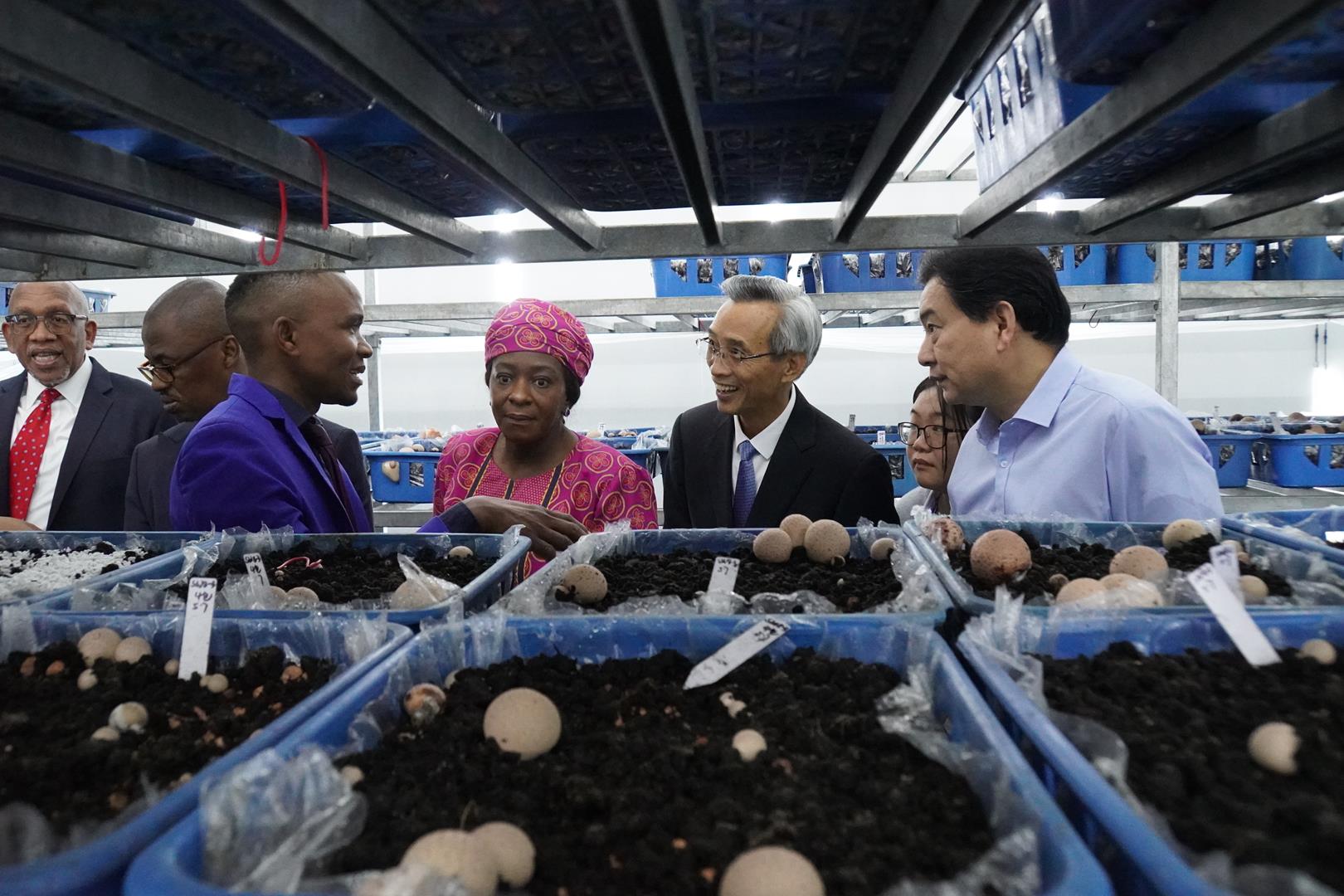 座谈会前,代表团一行参观了奉浦院区花卉种源创新中心和食用菌所中试菇房,相关所领导和科技人员参与接待并展示了各领域的科研成果及应用场景。