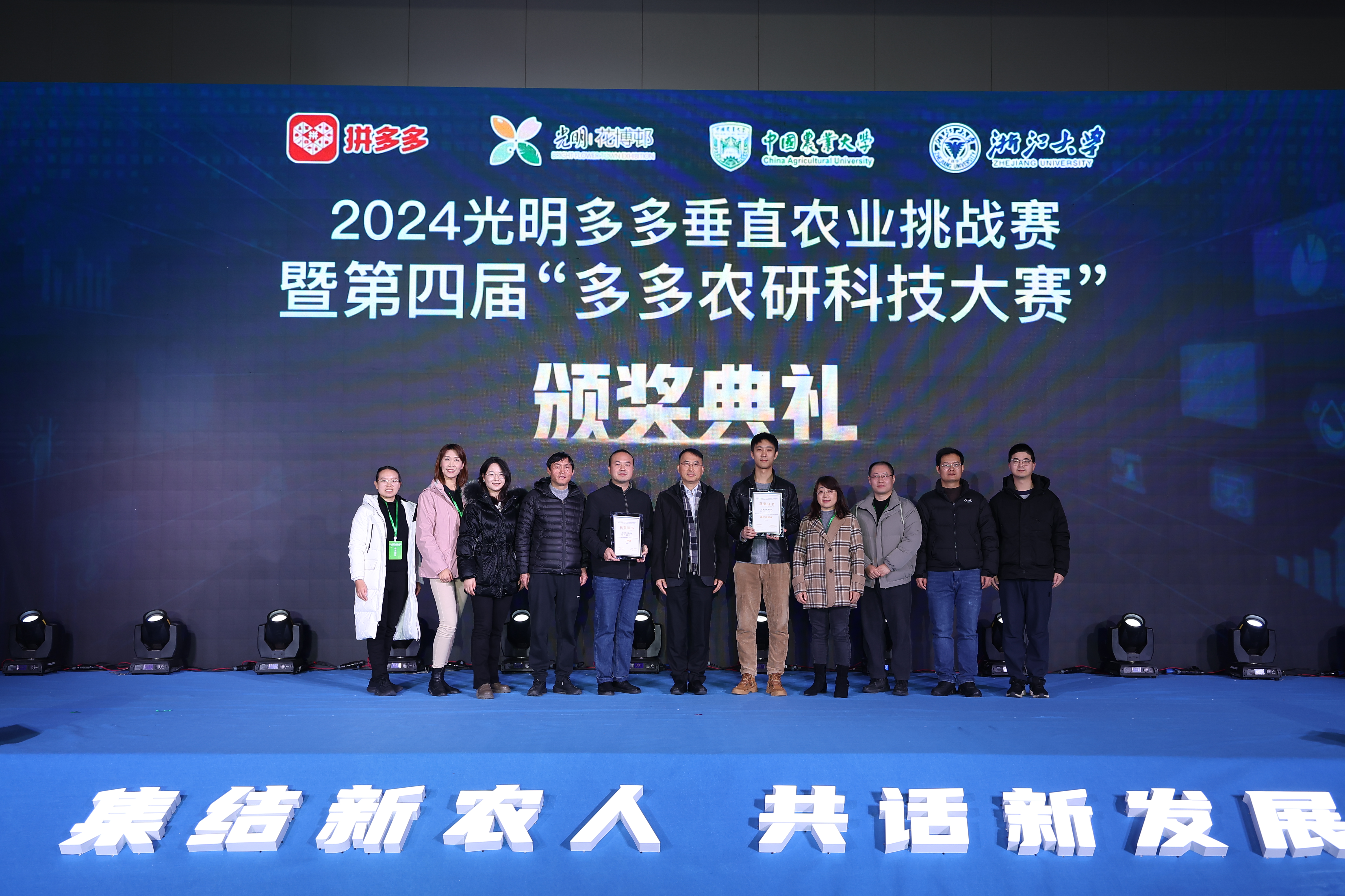 12月27日,2024光明多多垂直农业挑战赛暨第四届“多多农研科技大赛”在崇明光明花博邨落下帷幕。中国工程院院士、中国农业大学校长孙其信,上海市农业农村委员会党组书记、主任冯志勇,农业农村部对外经济合作中心副主任马志刚,上海市农业科学院党委委员、副院长赵志辉,联合国粮农组织驻华代表处助理代表韩焰,中国农业机械化协会战略咨询委员会主任刘宪,拼多多高级副总裁、首席发展官朱政,光明食品集团品牌总监、工会主席刘婧,上海花卉园艺(集团)有限公司总裁佟德川参加颁奖典礼并为获奖团队颁奖。