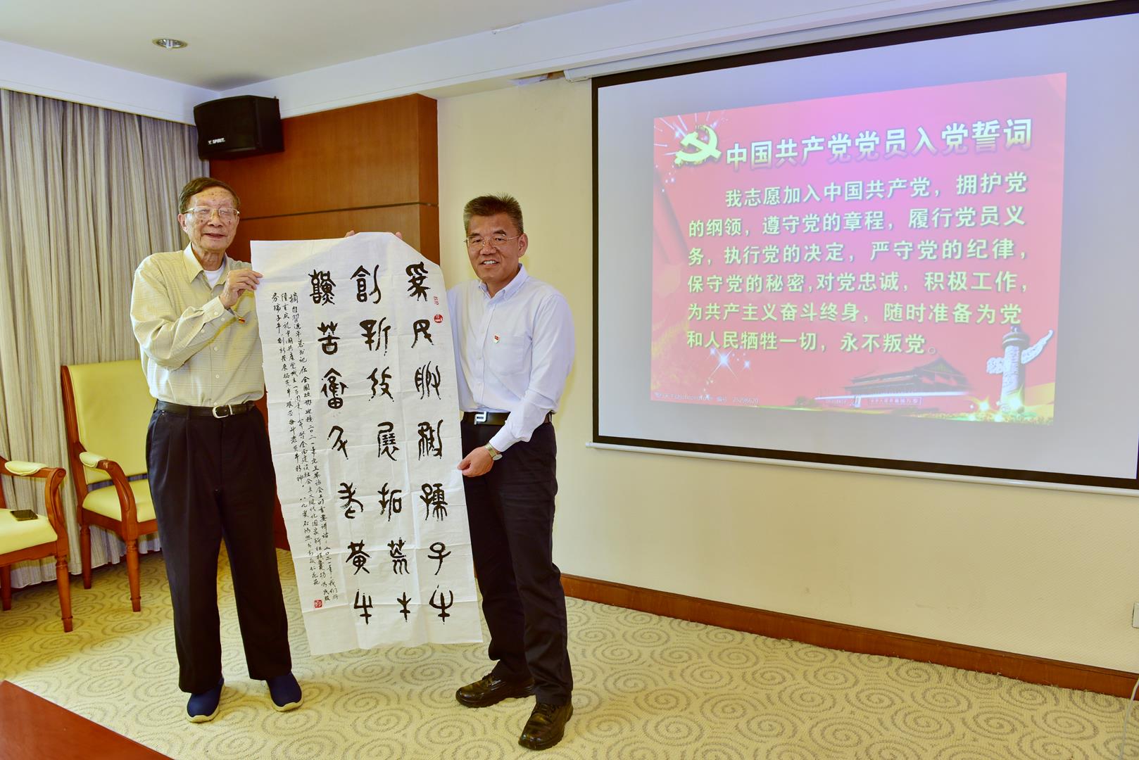 会上,蔡友铭同志为殷熙仁、石鸿熙、张务模、汪树俊等4名老党员颁发了“光荣在党50周年”纪念章;参会全体党员重温了入党誓词。
