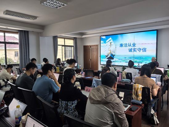 院纪检监察室副书记沈国辉为2024年度新进职工实践培训班作“廉洁从业,诚实守信”专题讲座