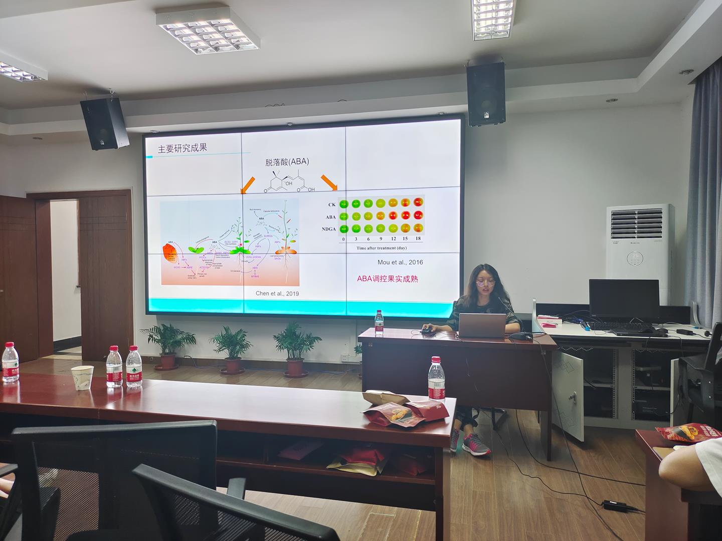 梁斌从个人简介,家乡介绍,主要研究成果三方面进行分享,主要研究了植物激素脱落酸相关基因调控果实成熟的分子机制,以及番茄果实香气物质的定向改良。