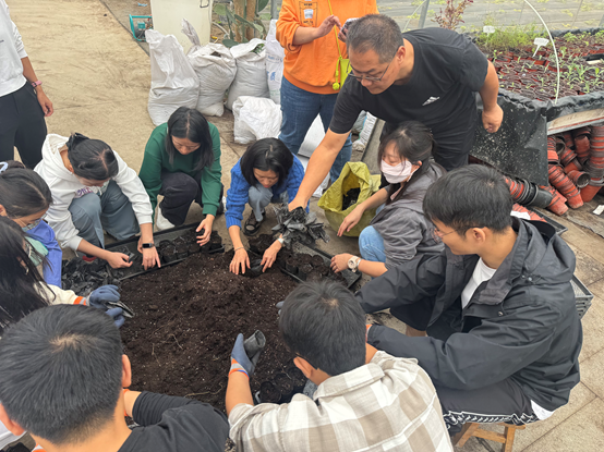 在热烈的交流中,大家快速掌握了扦插技巧,以及植苗后的施水要点,对整个苗木扦插过程有了更加系统的了解,开阔了视野。