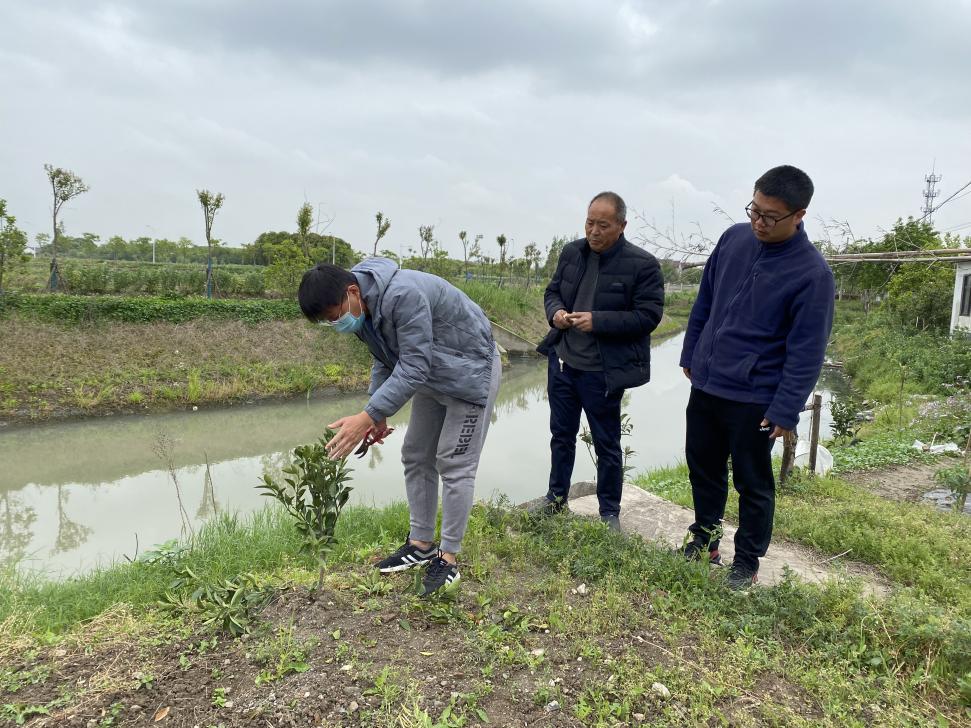 为深入学习贯彻习近平新时代中国特色社会主义思想主题教育,促进农业农村高质量发展,加强科技支撑,林果所青年党员开展全面助力奉贤区“全民共创国家森林城市”系列工作。2023年4月25-27日,林果所“一村万树”行动果树种植养护技术指导服务队一行6位青年党员进村开展现场调研和技术指导。青年党员们分别前往江海村、南陈村、北丁村,蔡家桥村等27个村居,同各村农副主任及村民一起,现场查看果园土壤条件和苗木定植情况,根据果树生长情况,有针对性的提出了桃、柑橘、李、枇杷等果树苗木定植初期的养护指导建议。